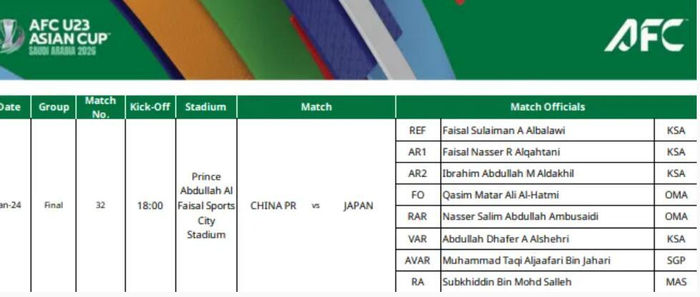 【亚足联官方:U23亚洲杯决赛中日之战由沙特裁判组执裁】2026年U23亚洲杯半决赛,中国U23队击败越南U23队,晋级决赛,他们将在决赛对阵日本U23。